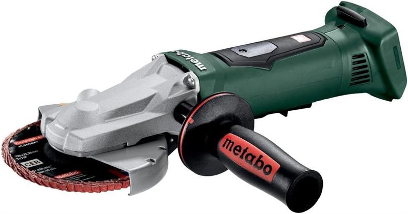 The Metabo WPF 18 LTX 125 Cordless Flat Head Angle Grinder is a high-performance tool designed for grinding, cutting, and deburring in tight spaces. Featuring an 18V battery system, this grinder delivers exceptional torque and efficiency comparable to a corded tool. The extremely flat gear head allows for working at acute angles down to 43°, making it ideal for quick removal of welding slag, rust, or paint. With a slim handle for fatigue-free operation, a paddle switch with a dead-man function for safety, and a robust motor for long service life, this grinder provides superior control, comfort, and durability.