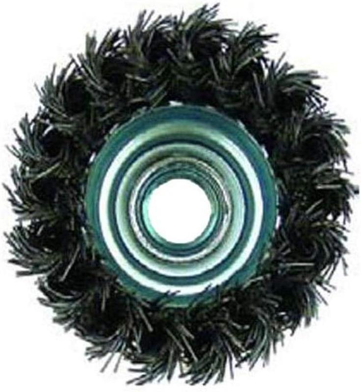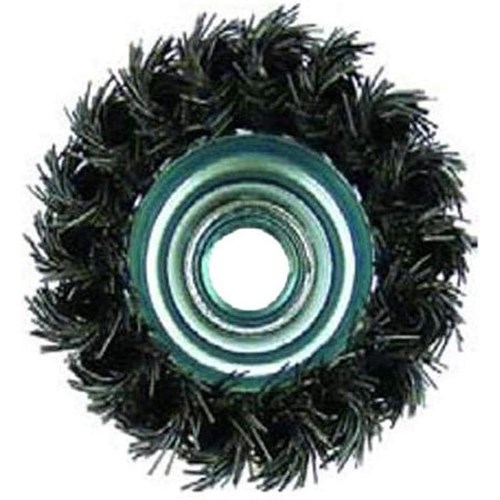 This wire cup brush is designed for aggressive material removal and surface preparation. It features knotted carbon steel wire for durability and efficiency, making it ideal for cleaning welds, removing rust, and deburring metal surfaces.