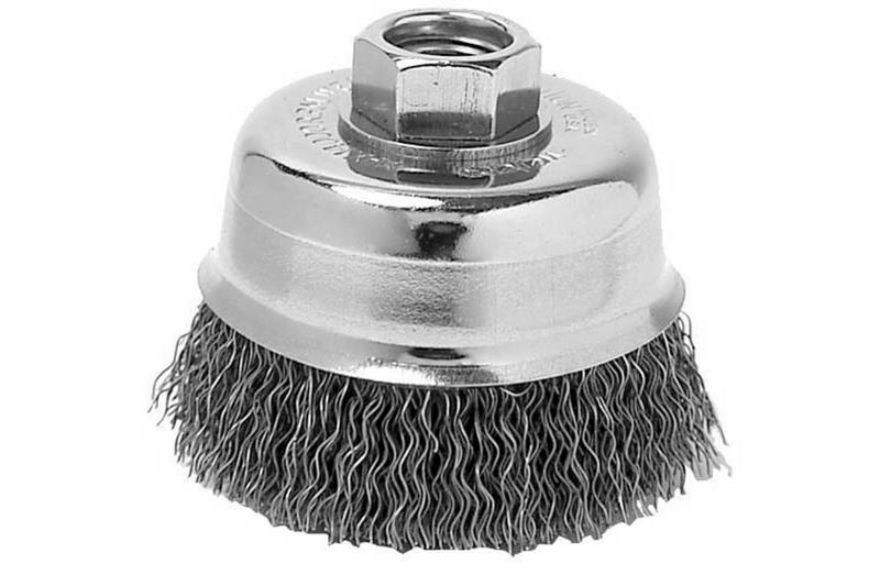 This wire cup brush is designed for universal use in metal processing, making it ideal for smoothing welding seams and points, stripping slag, scales, and old paint. It features stainless steel-wire edging, ensuring high durability and efficiency.