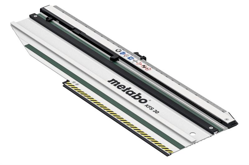 The Metabo KFS 30 Guide Rail (629015000) is a compact and mobile solution for precise angled cuts directly at the worksite. It is ideal for roof work or mounted workpieces and can be connected to Metabo circular saws for seamless operation. The guide rail allows for angular cuts up to 60°, with locking positions at standard angles for accuracy. It features an integrated hold-back mechanism that moves the saw back to the starting position after the cut, ensuring efficiency. Additionally, the splinter protection minimizes tearing while sawing, and the adhesive coating provides a secure, non-slip hold while protecting the workpiece surface.