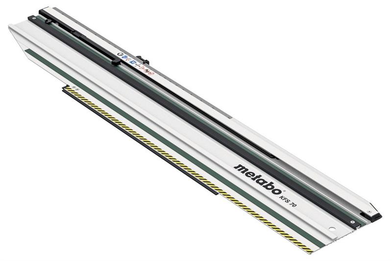 The Metabo KFS 70 Cross-Cut Guide Rail (629017000) is a mobile and compact solution for precise angled cross cuts directly at the worksite. It is ideal for roof work or mounted workpieces and can be coupled with Metabo circular saws for seamless operation. The guide rail allows for angular cuts up to 60°, with click positions at standard angles for accuracy. It features an integrated return mechanism that moves the saw back to the starting position after the cut, ensuring efficiency. Additionally, the splinter protection minimizes tearing while sawing, and the adhesive coating provides a secure, non-slip hold while protecting the workpiece surface.