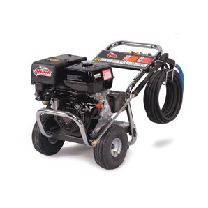 These Shark models are tough gasoline-powered direct-drive cold water machines that deliver cleaning power of up to 3500 PSI. Built on compact sturdy steel frames, each unit features a dependable industrial-grade Honda engine, Kärcher crankcase pump, hose/gun rack, detergent injection, and tubed pneumatic tires. All models are ETL certified.