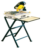The TP7 is a lightweight, compact tile saw. The sturdy steel precision frame is matched with a cast aluminum oversized conveyor cart. An innovative water-cooled bearing assembly works with the water pump to keep key bearing components running cooler. A thermal plastic water tray reservoir will not rust nor bend out of shape.