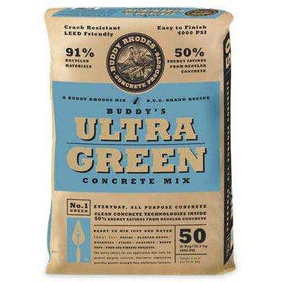 Buddy's Ultra Green was developed to make a superior general purpose concrete that re-uses material formerly headed for the landfill and halves the amount of resource intensive cement. We succeeded. Instead of mining new aggregate from mountains, we recycle the concrete from former buildings, roads and sidewalks to make up the bulk of the inert ingredients in the mix. As one man's trash can be another man's treasure, B.U.G.™ incorporates superfine industrial by-products that actually make the concrete stronger, more durable, and more impervious to water while reducing the need for new cement. In addition, the formula utilizes an advanced fiber technology that greatly improves B.U.G.'s resistance to cracking.