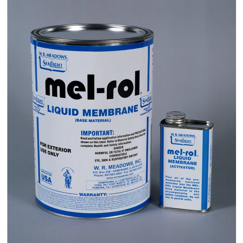 W. R. MEADOWS accessory products included in the MEL-ROL waterproofing system are: MEL-ROL LIQUID MEMBRANE, MEL-PRIME™ adhesive (solvent-based and water-based), POINTING MASTIC, DETAIL STRIP, CATALYTIC BONDING ASPHALT, TERMINATION BAR, PROTECTION COURSE and MEL-DRAIN™ drainage board.