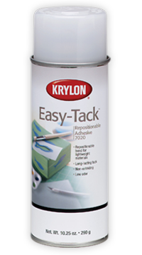 Repositionable Adhesive temporarily and precisely holds lightweight materials, like stencils and photos, in place.