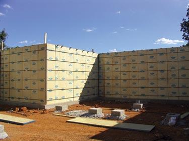 A close up of the staging and 5/8" engaged rods. Notice the rods breaking in the middle of a panel between the two ties.