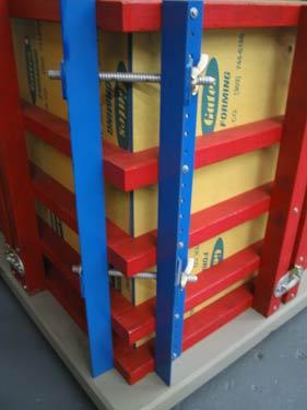 Collapsible Inside Breakaway Corner mounted on a #9 gang form showing the Gates retractible turnbuckle wheel for collapsing and expanding the inside corner.