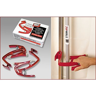 Never damage another wall. With the ZipWall® Side Clamp and Foam Rail, you can create a tight seal without tape. The Side Clamp™ wall mount snaps onto the Foam Rail™ cross bar and then pushes the plastic against the wall to create a dust tight edge. It's a crazy looking tool but it's quick and easy to use. Take a look at the short video demos listed on this page, one shows the Side Clamp™ wall mount in action. Also, take a look at our Side Pack which includes Side Clamps™, Foam Rails™, and a Custom Bag.