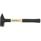Blacksmith hammers have polished faces with generous bevels; rust-resistant black finish on sides. Flame-treated hickory handles are wedged in tapered eye. Fiberglass handles fitted with overstrike shields in neck area. Blacksmith hammers have hickory handles 2, 2 1/2 and 3 lb. heads while fiberglass handles have 2 1/2 & 3 lb. heads.