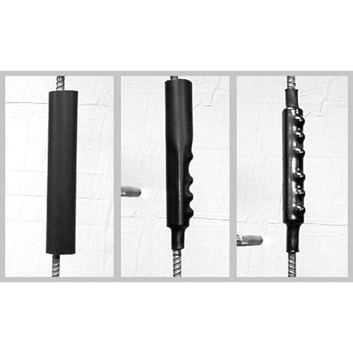 SpliceSeal is a specially formulated "shrink tube" that allows for very fast and efficient sealing of joined reinforcing bars, to avoid corrosion. SpliceSeal can be used on bare bar, to patch damaged epoxy-coated bar, and to encapsulate joints, whether they're lapped-spliced, welded or joined with commercially available couplers, as shown here.