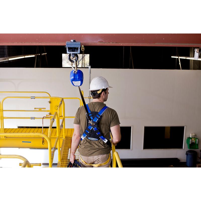 Werner Blue Armor 1000 harnesses deliver the right combination of safety features, comfort, and durability for the professional worker. Unique wear indicating webbing and impact indicators allow for easy inspection. They feature 5-point adjustments for optimal fit, lightweight hardware and pads, and bright colors for worker visibility on the jobsite. The back pad is large enough to protect the user's back, padded to absorb sweat and feel comfortable, and designed to prevent tangling when donning the harness. The rear dorsal D-ring is made from high quality forged alloy steel for strength and durability. Slotted pass-through buckles on the leg and chest straps fasten without twisting.