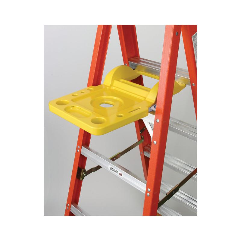 76-2 Molded Plastic Pail Shelf comes with mounting hardware and instructions. SPILL-PROOF rugged construction. Easy to keep clean and automatically closes with the stepladder. Built-in rag rack.