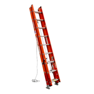 The D6200-3 fiberglass extension ladders have non-conductive rails making these ladders ideal for working near electricity. Unique three section design allows the ladder to be stored and transported more easily due to shorter lenght than a 2 section ladder. With a duty rating of 300 pounds, the D6200-3 series is durable and long lasting. The exclusive ALFLO rung joint means TWIST-PROOF performance on the job. The Traction-Tred D rungs are slip resistant and the side rails are interlocking. The dual action feet are for use on hard or penetrable surfaces and swivel easily. The durable rail shield bracket and shoe help protect the bottom of the rail.