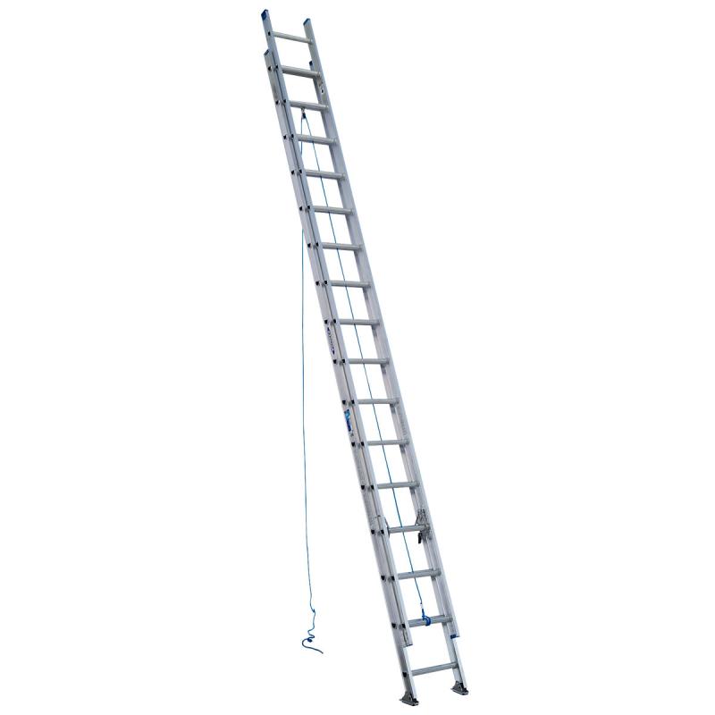 The D1300-2 series aluminum extension ladders have a duty rating of 250 pounds and heavy duty modified I-beam side rails. The Traction-Tred D rungs are slip resistant and the side rails are interlocking. Heavy duty spring-loaded locks operate smoothly. Durable shoes rest flat or are held in spur position with Shu-Lok feature. Mar-resistant end caps help protect the surface ladder is leaning against. Exclusive ALFLO rung joint means TWIST-PROOF performance every time.