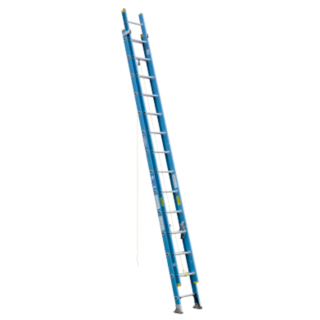 The D6000-2 series fiberglass extension ladders have non-conductive side rails and a duty rating of 250 pounds. The TRACTION-TRED D rungs are slip resistant and the side rails are interlocking. The rail shields protect the bottom of the rail and the SHU-LOK shoe pivots easily for use on hard or penetrable surfaces. The exclusive ALFLO rung joint guarantees TWIST-PROOF performance.