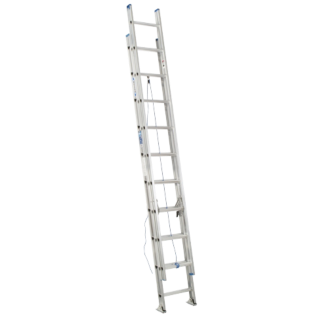 The D1300-2 series aluminum extension ladders have a duty rating of 250 pounds and heavy duty modified I-beam side rails. The Traction-Tred D rungs are slip resistant and the side rails are interlocking. Heavy duty spring-loaded locks operate smoothly. Durable shoes rest flat or are held in spur position with Shu-Lok feature. Mar-resistant end caps help protect the surface ladder is leaning against. Exclusive ALFLO rung joint means TWIST-PROOF performance every time
