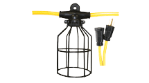 Light Strings - Voltec’s wide variety of light strings are the perfect solution to your temporary lighting needs at locations such as construction sites, parking lots, marinas and tree lots. Light strings are available in 50 or 100 ft lengths and are made with heavy-duty molded 150 watt sockets, which are spaced every ten feet. All of our light strings have pre-assembled plastic or metal cages which saves you time, as well as the cost of installation.