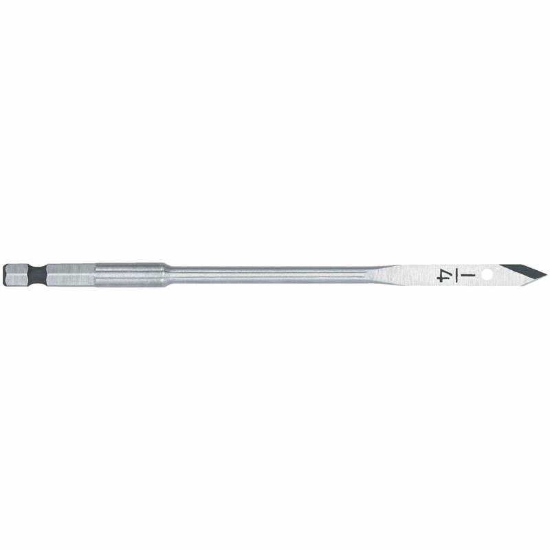 Featuring a heavy-duty, full-length, heat-treated shank for protection against bends and breaks, DEWALT Spade Bits are equipped with high-performance cutting spurs for optimum hole finish. An Extreme Speed Channel provides fast chip removal, and a ¼” ball groove shank offer quick-change applications. A ¼” hex shank helps to prevent slippage, and a hang hole enables easy storage and wire pulling.