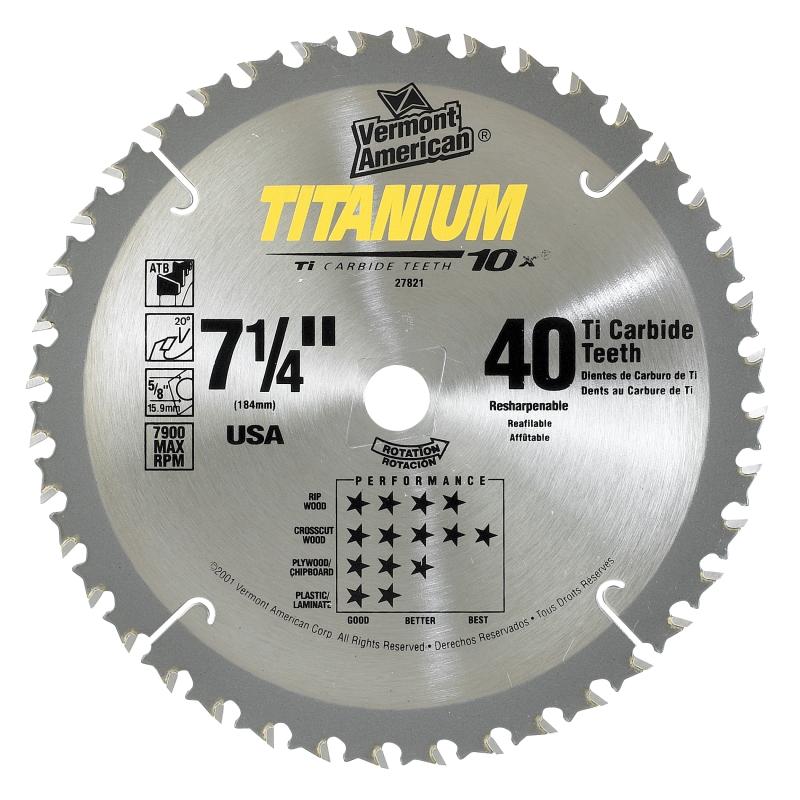 7-1/4 In. 40 Tooth Titanium 10X® Carbide Tipped Circular Saw Blade