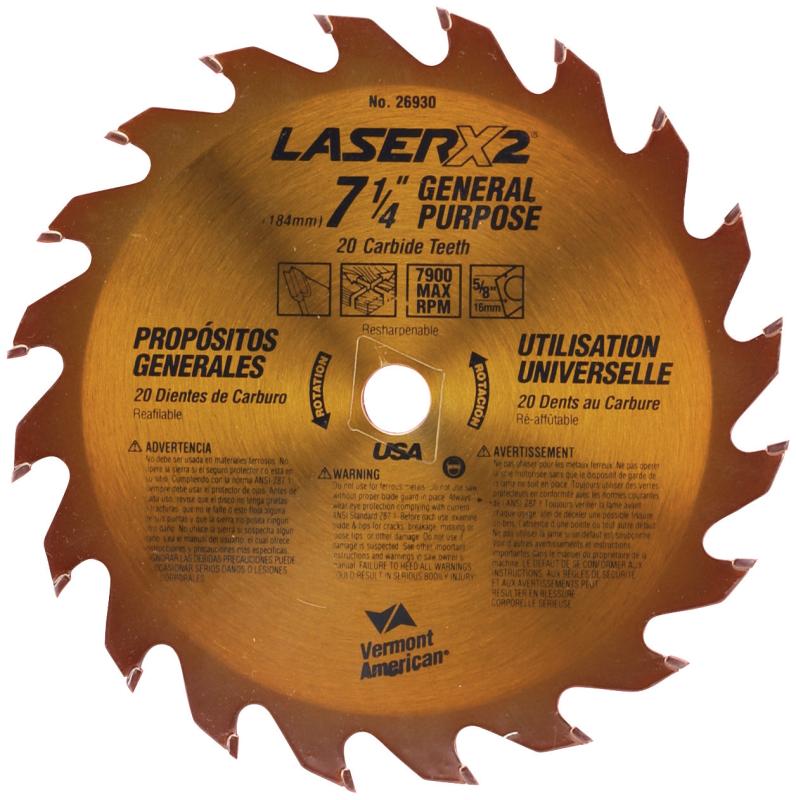 7-1/4 In. Laser X2® Series Carbide Tipped Circular Saw Blade