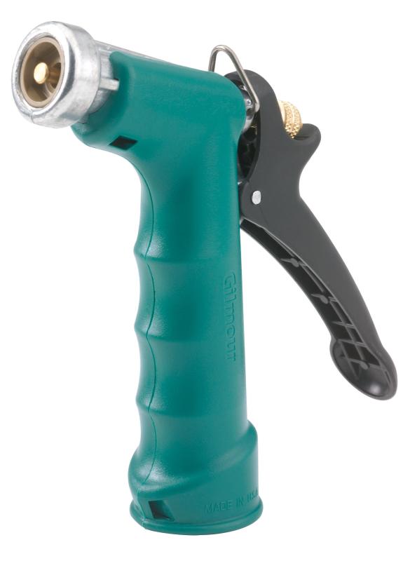 Adjustable Spray Pattern: YesConstruction: MetalFlow Control: NoTrigger Configuration: RearGrip Type: Insulated molded gripNozzle Type: PistolNumber of Spray Patterns: 0Type of Spray Patterns: N/AWarranty: Life-time warrantyColor / Finish: Green/black/silverMaximum Pressure Rating (psi): 60Nozzle Fitting Size: 3/4 In.Nozzle Material: Zinc