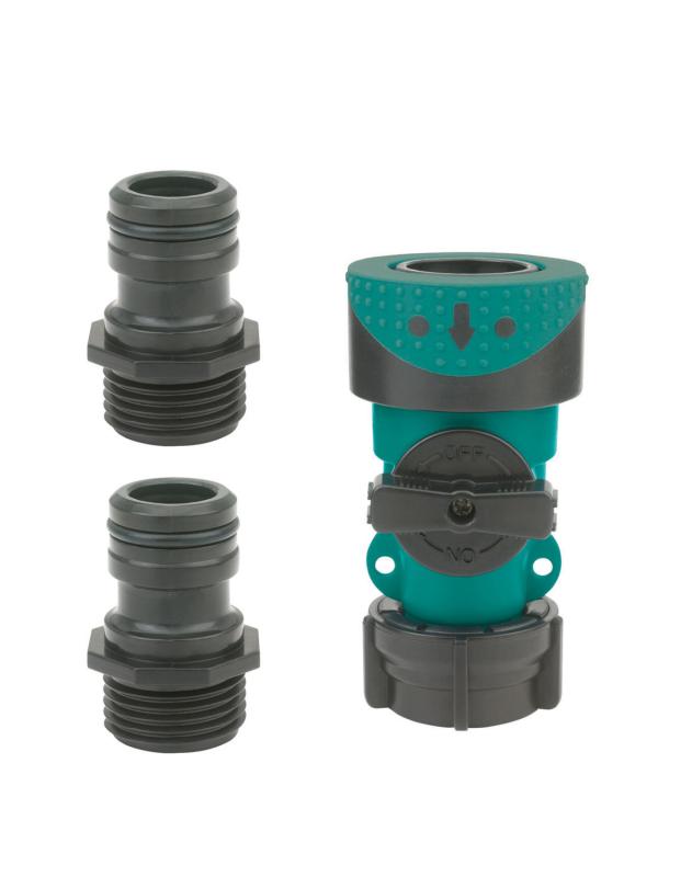 • Includes 1 female hose end connector with shut-off and 2 male hose end adapters