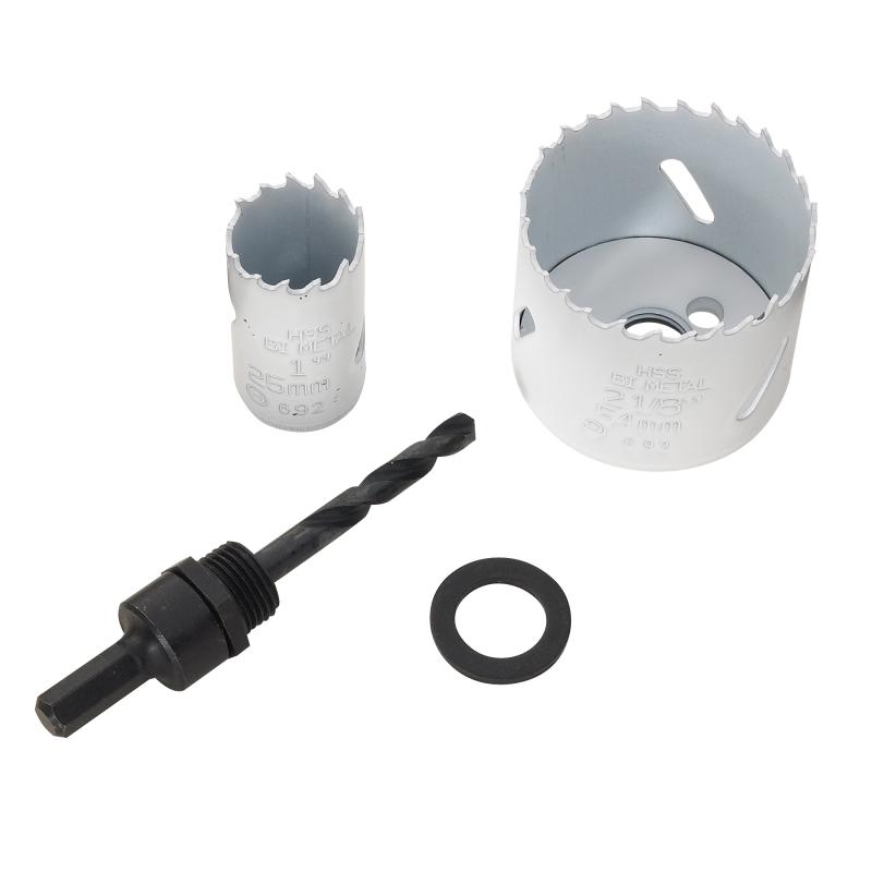 • Package Contents: 1 In. Holesaw, 2-1/8 In. Holesaw, Mandrel, Washer