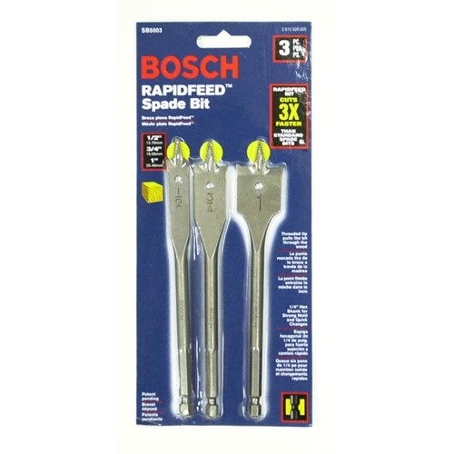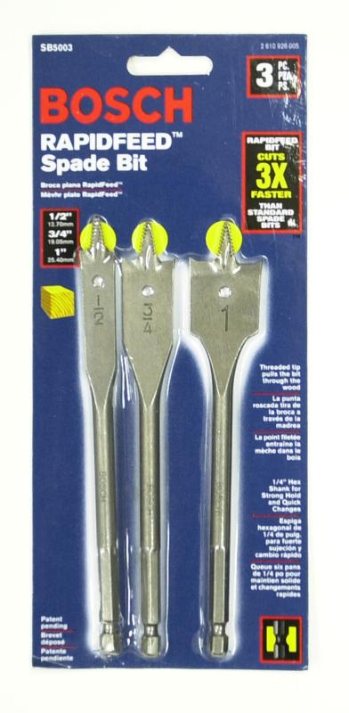 • Bit Sizes: 3 Pc. Bosch Rapid Feed Spade Bit Set