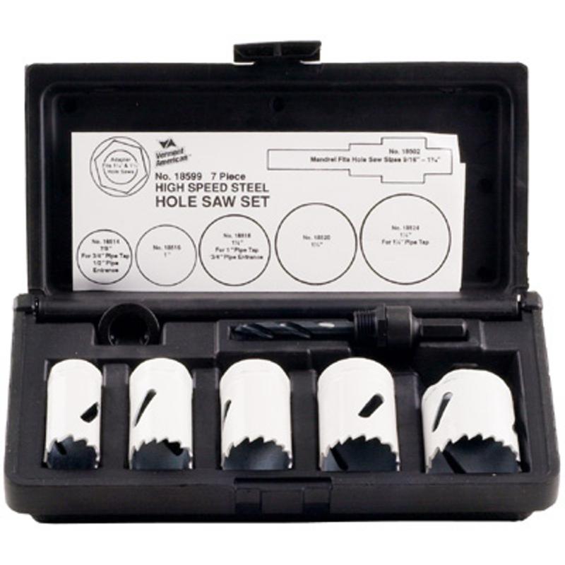 Bit Sizes: 7/8 In., 1-1/8 In., 1-1/4 In., 1-1/2 In.Case Included: NoDrill Bit Type: Hole SawNumber of Pieces: 5Package Contents: Hole Saw Sizes: 7/8 In., 1-1/8 In., 1-1/4 In., 1-1/2 In., 1 MandrelRecommended Safety Equipment: Safety GlassesBit Material: High Speed SteelTeeth Per Inch: 5Bit Diameter: 7/8, 1, 1-1/8, 1-1/4 and 1-1/2 In.Hole Saw Type: MultipurposeKit: No