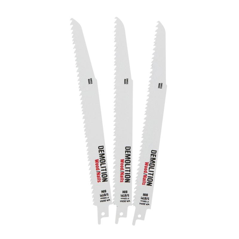 Blade Length (in): 9Blade Thickness (in): 0.05Material Cut: Multi-PurposeTooth Count: 49Package Contents: 3 BladesProgressive Blade Tooth Spacing: YesBlade Cutting Material: BimetalSaw Blade Type: Reciprocating SawSet / Individual: SetTeeth Per Inch: 5-8 Teeth Per Inch