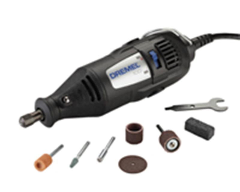 Powered Tool Power Source: Electric - CordedLength (in): 6Width (in): 5.25Height (in): 5.25Tool Weight (lbs): 1Cord Length (ft): 6Voltage: 120Amperage (A): 1.15Case Included: NoChuck Capacity: 1/8 In.Chuck Design: KeyedColor / Finish: GrayCordless / Corded: CordedHousing Material: High Density PlasticMain Handle Type: BarrelMultiple Speeds: Single SpeedMaximum RPM - No Load: 35000Reverse: NoSide Handle: NoVariable Speed: YesBump-Off Switch: NoCSA Certified: NoETL Listed: NoUL Listed: YesPackage Contents: Rotary Tool, (7) Assorted AccessoriesWarranty: Limited 5 Year