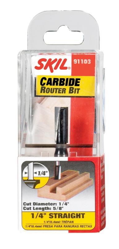 Shank Diameter: 1/4 inCut Diameter (in): 0.25Number of Flutes: 1Flute Length (in): .625Overall Length (in): 1.875Straight Router Bit Type: StraightBit Material: Carbide TippedColor / Finish: MetalSet / Individual: IndividualCase Included: NoPackage Contents: 1 Bit