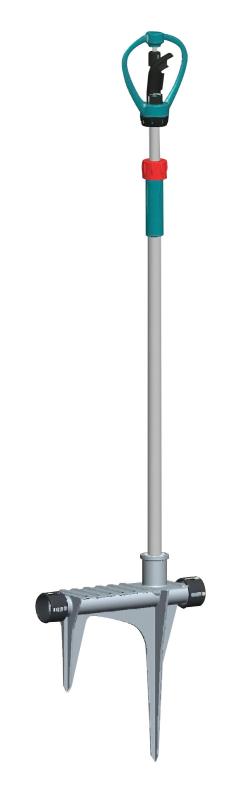 Sprinkler Design: WhirlingHeight (in): 48Number of Spray Patterns: 1Coverage Area (ft²): 1250Maximum Spray Distance (Ft): 40Color / Finish: Silver/teal/redBase Material: MetalHose Fitting Size: 3/4 In.Wheeled: NoSprinkler Base Type: SpikeSprinkler Head Material: Aluminum