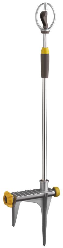Sprinkler Design: WhirlingHeight (in): 48Number of Spray Patterns: 1Coverage Area (ft²): 5025Maximum Spray Distance (Ft): 40Color / Finish: Grey/yellowBase Material: MetalHose Fitting Size: 3/4 In.Wheeled: NoConnector Material: PlasticCoverage Of Patterns: FullSprinkler Base Type: Spike