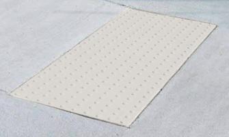 • Radius Tactiles are made of a colorfast and UV stable homogenous glass and carbon composite with fiberglass truncated domes for enhanced durability. The Cast in Place Replaceable Radius Tactile is used for new curb ramps or new construction applications. The Surface Applied Radius Tactile is used to retrofit over an existing concrete substrate and can be installed in as little as 10 minutes.