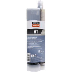 AT is a two-component, high-solids, 10:1 ratio, acrylic-based adhesive for use as a high strength, anchor-grouting material. Formulated for use in all types of weather, AT is designed to dispense easily and cure at temperatures down to 0°F. Resin and initiator are dispensed and mixed simultaneously through the mixing nozzle. AT meets the physical requirements of ASTM C881, Type I & IV, Grade 3, Classes A, B & C, except AT is a non-epoxy product formulated for fast cure time.