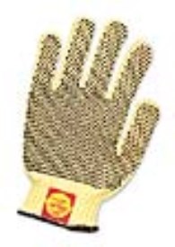 Seamless knit gloves of aramid fibers, such as DuPont™ Kevlar®, have a fiber strength which is five times stronger than steel on an equal weight basis. Aramid fibers can withstand temperatures up to 900° F (480° C) without breaking down. 13 cut, Lightweight 100% Twaron. (7, 8, 9)