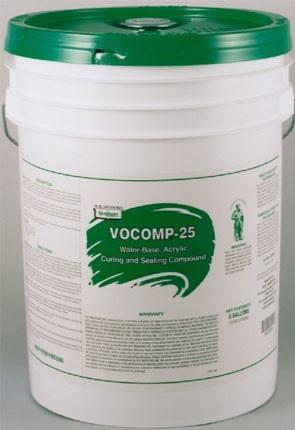 VOCOMP-25 water-based acrylic concrete sealer is a ready-to-use concrete curing and sealing compound formulated of special acrylic polymers in a true water-based carrier. VOCOMP-25 provides improved resistance to rain, sun, freezing temperatures, most acids and industrial chemicals, petroleum, deicing salts, cleaning agents (except aromatic solvents), diluted caustics, and other pollutants.