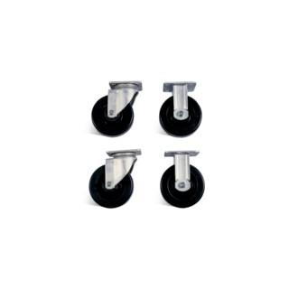 The Model 505 set of four 5 in casters includes two rigid and two swivel 2 in hard rubber wheels that support 1,240 lbs per set. Fits Model 32, 36,42, 60, 69, 79, 89, 90, 91, 2032, 2048, 2060, 2472, 3068, 4824, 4830