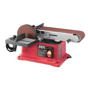 Double up and save a lot of bench top space with the Skil 4.3 Amp 4 in. x 36 in. Belt / 6 in. Disc Sander station that will allow you to complete a series of sanding applications with just one tool. The work table rotates position from the disc to that belt sander with ease to you don't lose time working on your project. With pre-drilled holes, the Skil Belt / Disc Sander can be mounted to your bench top for security, and the dust port can be connected to a vacuum hose keep your work space air as clean as possible. The Skil 4.3 Amp 4 in. x 36 in. Belt / 6 in. Disc Sander is just what a woodworker needs for sanding a variety of lengths and angles in their workshop.