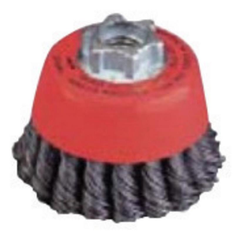NortonĀ® 6" X 5/8" Twist Knot Wire Cup Brush with 5/8" - 11 arbor hole has a rigid structure and rotates at a speed of 6000 RPM. It suits high impact cutting and cleaning on more demanding applications. Single row, twist knot construction limits flaring of the brush on corners and angles. It is sold as 5 per pack.