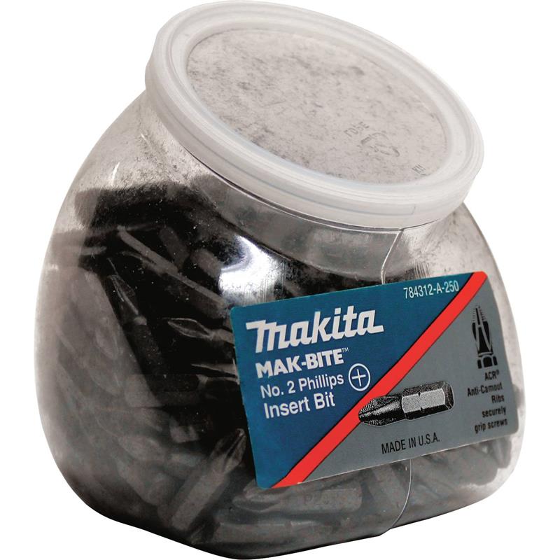 Makita Mak-Bite Professional Phillips Insert Bit is made from durable steel and features and industrial design for long life. Features Anti-Camout Ribs (ACR) that securely grip the screw reducing slipping and stripping. The bit is designed to be used with bit holders and used in a variety of fastening applications including deck building and framing.