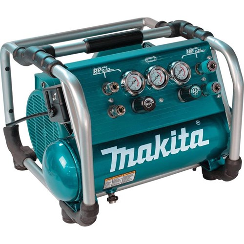 The heart of Makita’s high pressure pneumatics is the 2.5 HP High Pressure Air Compressor, model AC310H. With a high pressure 1.6 gallon tank, the AC310H provides the same capacity as a conventional five-gallon tank at 120 PSI, but with less noise and a more compact size for easier transport. In addition, the AC310H is engineered to run high pressure and conventional nailers.