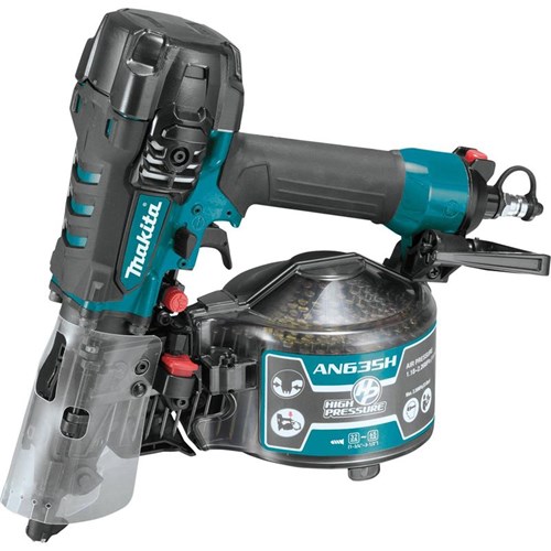 Makita’s 2-1/2-inch High Pressure Siding Coil Nailer, model AN635H, features high pressure technology for more consistent flush nailing with less weight and a more compact size.