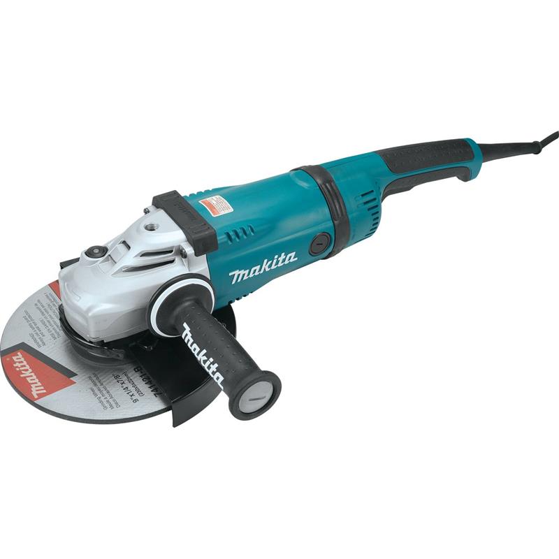 The Makita 9 in. angle grinder includes a soft start feature for smooth start-ups and a 15.0 Amp motor delivers more output for increased performance. It has a rotatable rear handle can be positioned for multiple applications. The Makita angle grinder is ideal for welders, stone finishers, masons, fabricators and more.
